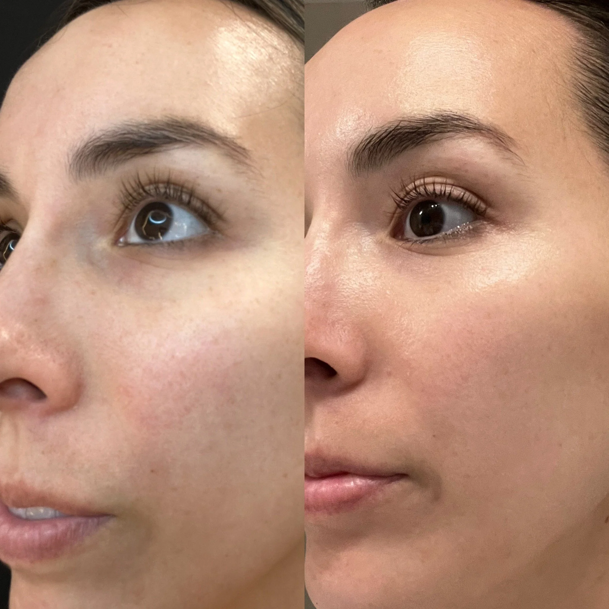 Custom Serum Blending – We don’t just pick one serum and call it a day. We layer professional-grade serums based on your unique skin needs, combining things like salmon DNA, exosomes, peptides, growth factors, and other powerhouse ingredients.